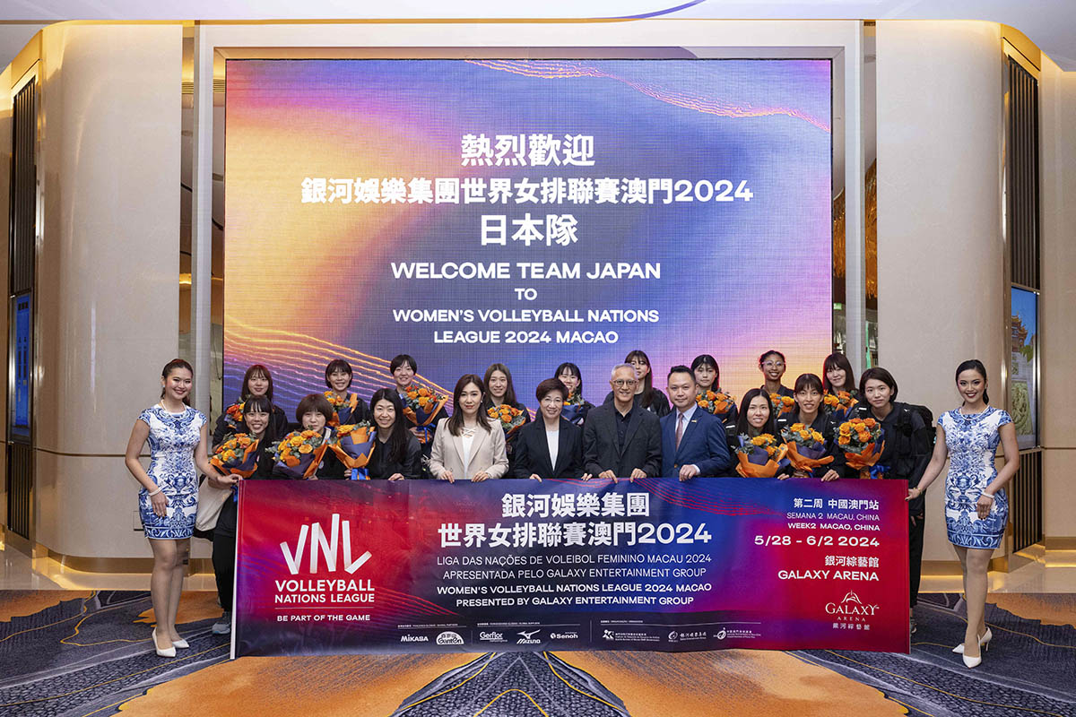 由澳門特別行政區政府體育局、銀河娛樂集團及中國澳門排球總會主辦的「銀河娛樂集團世界女排聯賽澳門2024」將於本年5月28日 (星期二) 至 6月2日 (星期日)一連六天在銀河綜藝館舉行,日前已抵澳的球隊開始進行訓練,而日本隊亦於今(24)日抵達澳門。