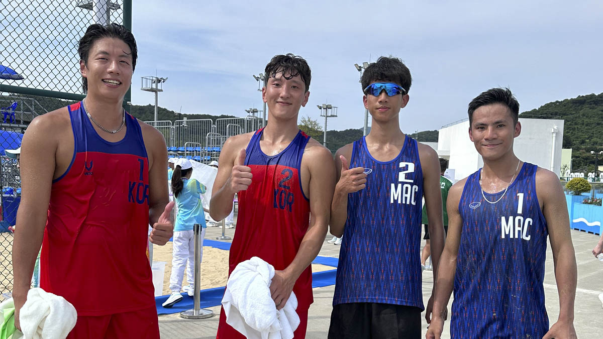 第十九屆亞洲運動會沙灘排球周三(20日)第二日賽事,澳門男子隊黃偉熙/張皓泓第二戰對韓國1隊李東奭/金峻榮,以0:2告負。