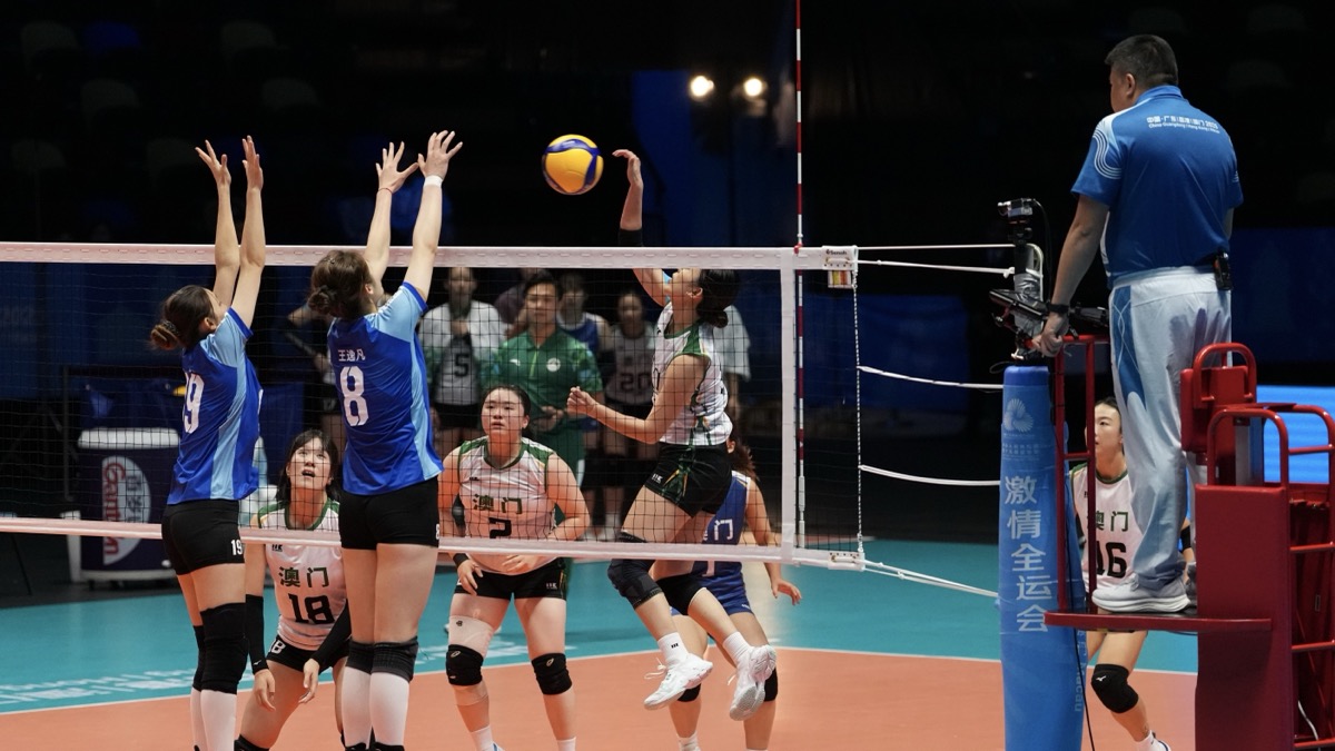中華人民共和國第十五屆運動會排球項目,澳門女排周一(17)在第9-14名排名賽首戰以直落三局不敵廣東。