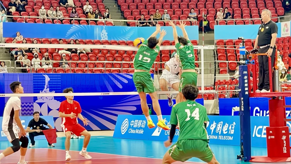 澳門男排築起三人攔網城牆