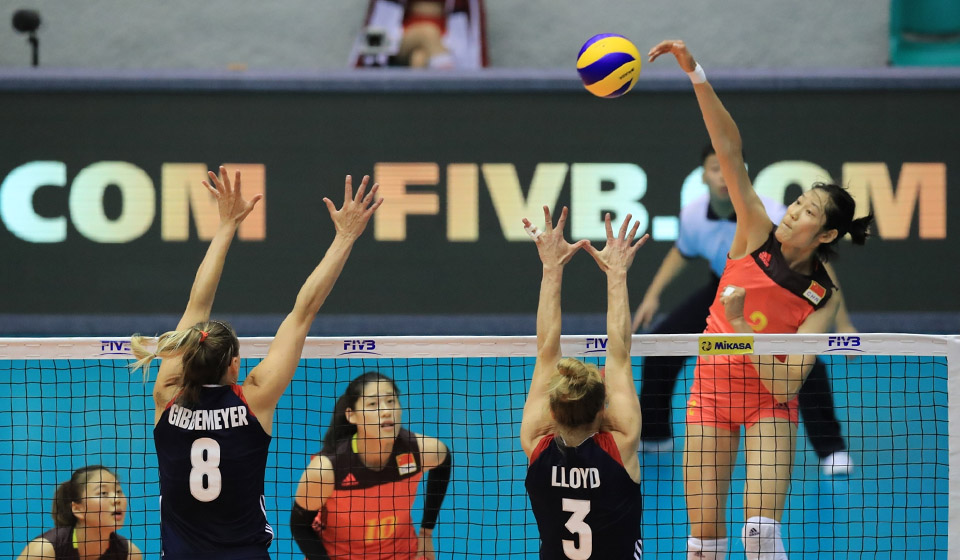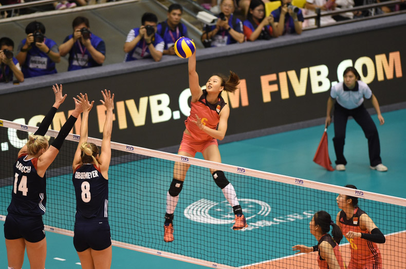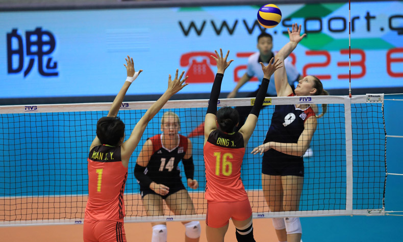 國家隊今場派出袁心玥、朱婷、李靜、高燕、龔翔宇及丁霞正選出場,與美國爭奪亞軍,首局雙方多次打成平手,戰至24比23未能把握領先機會,被美國從後趕上以27比25領先,第二局國家隊開局不錯,曾拉開至16比13,在朱婷得分下以25比23回敬一局,第三局掀起高潮,國家隊在兩次挑戰成功保持領先優勢,最後以25比21反先局數2比1,第四局,國家隊在攔防失誤,雖曾領先16比13 ,但被追平21平手後被美國反壓,以25比23見負,雙方又再打平。