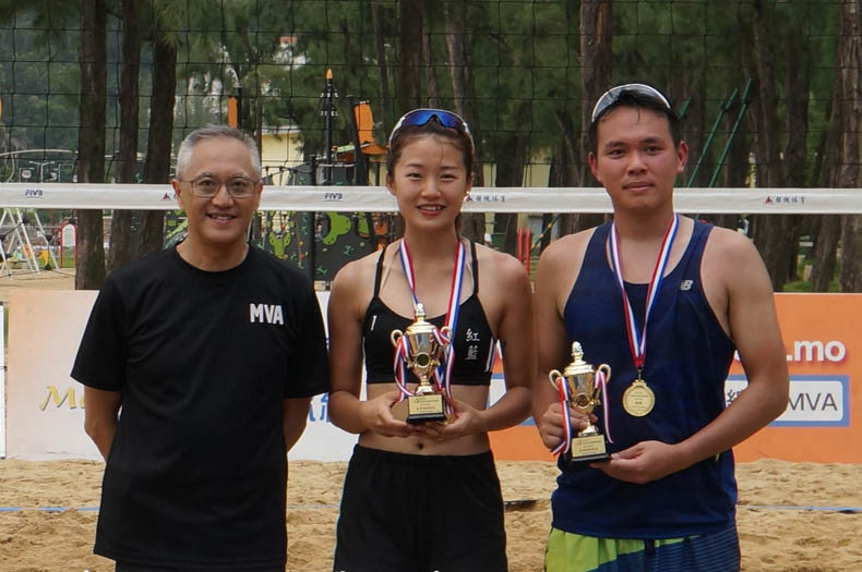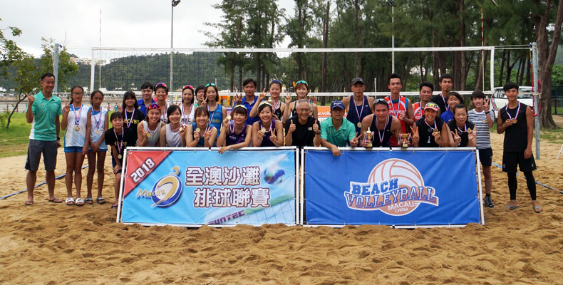 2018全澳沙灘排球聯賽周日(1日)上演最終決戰,男甲“細細件件"林永健/黎世迪在激戰三局下擊敗“雙SET”蔡偉傑/魏金雄完成三連霸;女甲“紅藍B"梁安盈/羅詠心則以直落兩局零封“紅藍A"李倩君/譚健婷封后。