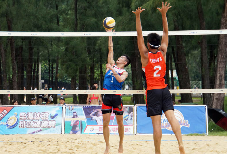 2018全澳沙灘排球錦標賽周日(26日)上演最終決戰,男甲“雙SET”蔡偉傑/魏金雄直落兩局擊敗“紅藍A”林樂恒/黃偉熙首度稱王;女甲“紅藍A"李倩君/譚健婷成功復仇,零封沙排聯賽冠軍“紅藍B"梁安盈/羅詠心封后。