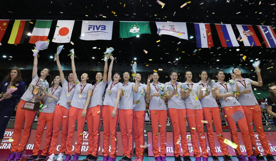 國家隊完勝巴西七度封后 由國際排球聯會授權、體育局與中國澳門排球總會聯合主辦、銀河娛樂集團呈獻贊助的「2016澳門銀河娛樂世界女排大獎賽」,今日(19日)於澳門綜藝館進行壓軸賽事,塞爾維亞先失一局反勝比利時3比2,奪得亞軍,而國家隊則以局數3比0擊敗巴西,三戰全勝勇奪澳門站桂冠。賽後社會文化司司長譚俊榮等嘉賓頒發冠軍獎項予國家隊,奪冠的國家隊更贏得冠軍獎金美元六萬元,而賽事最有價值球員獎項則由國家隊朱婷奪得。