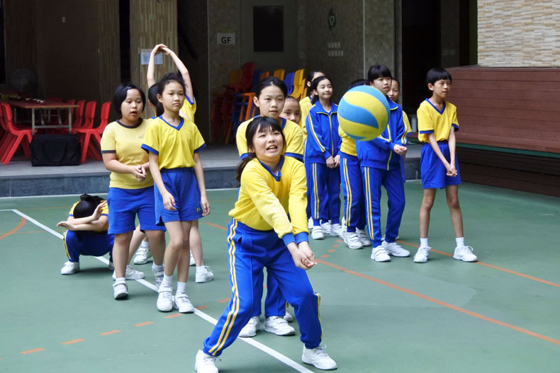 學生全情投入學習排球基本動作