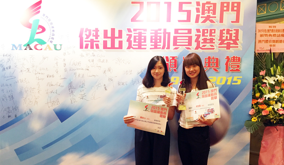 2015澳門傑出運動員選舉今天(29日)晚上舉行頒獎禮,中國澳門排球總會推薦的兩名女排隊員雙雙獲獎,其中,梁安盈獲選為澳門傑出運動員,而羅詠心則獲得網上最受歡迎澳門傑出青少年運動員金獎。