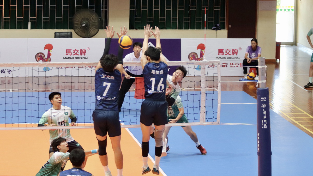 澳門男排首戰對上海復旦大學,開局展現爭勝決心,率先以16:12領先,隨後對方反撲,戰至24:24“刁時”,主攻戴坤鋮打下局點,28:26先取一局。復旦次局透過強力發球和高點強攻頻頻取分,15:25扳平局數。男排隨後兩局嘗試透過發球壓制對手一攻組織,但未達預期效果,22:25和18:25再失兩局,局數1:3告負。