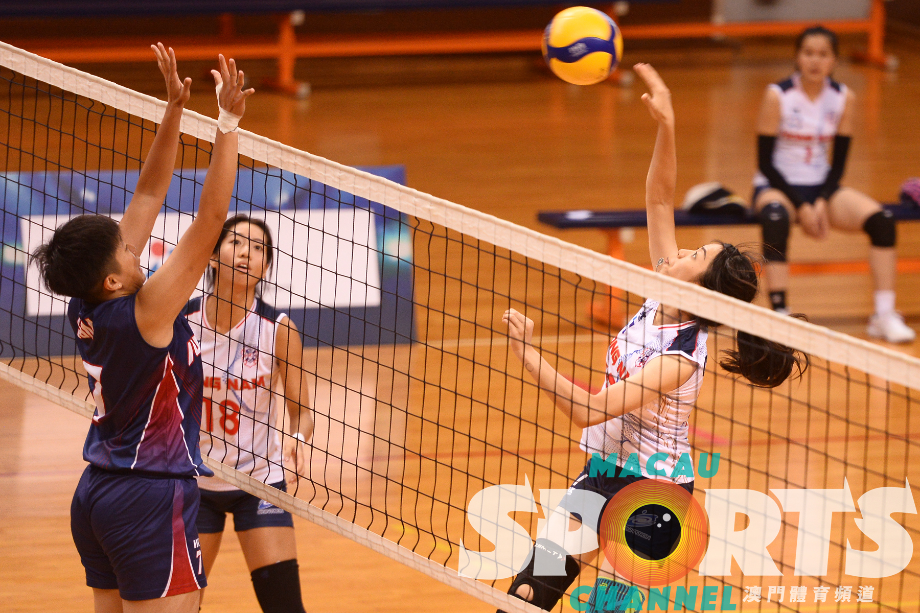 女子組方面,紅藍同樣延續今季強勢,剛於亞運會沙排賽事取得歷史最佳並列第九名佳績的梁安盈、羅詠心回歸室內排球應戰,面對著熟悉的“姊妹班”培正A,紅藍由梁可誼負責二傳組織,為梁安盈、陳凱琪、羅詠心帶來攻擊機會,首局早段打出一波7比0攻勢後,一直領先。培正A其後鞏固一傳及防守,進攻端由李倩君、林樂思等進攻得手,掀起一波小高潮下追至六分差距,但紅藍很快穩著節奏,憑梁安盈的扣殺以25比18先拔頭籌。