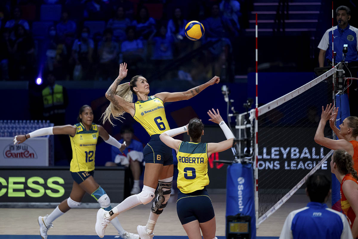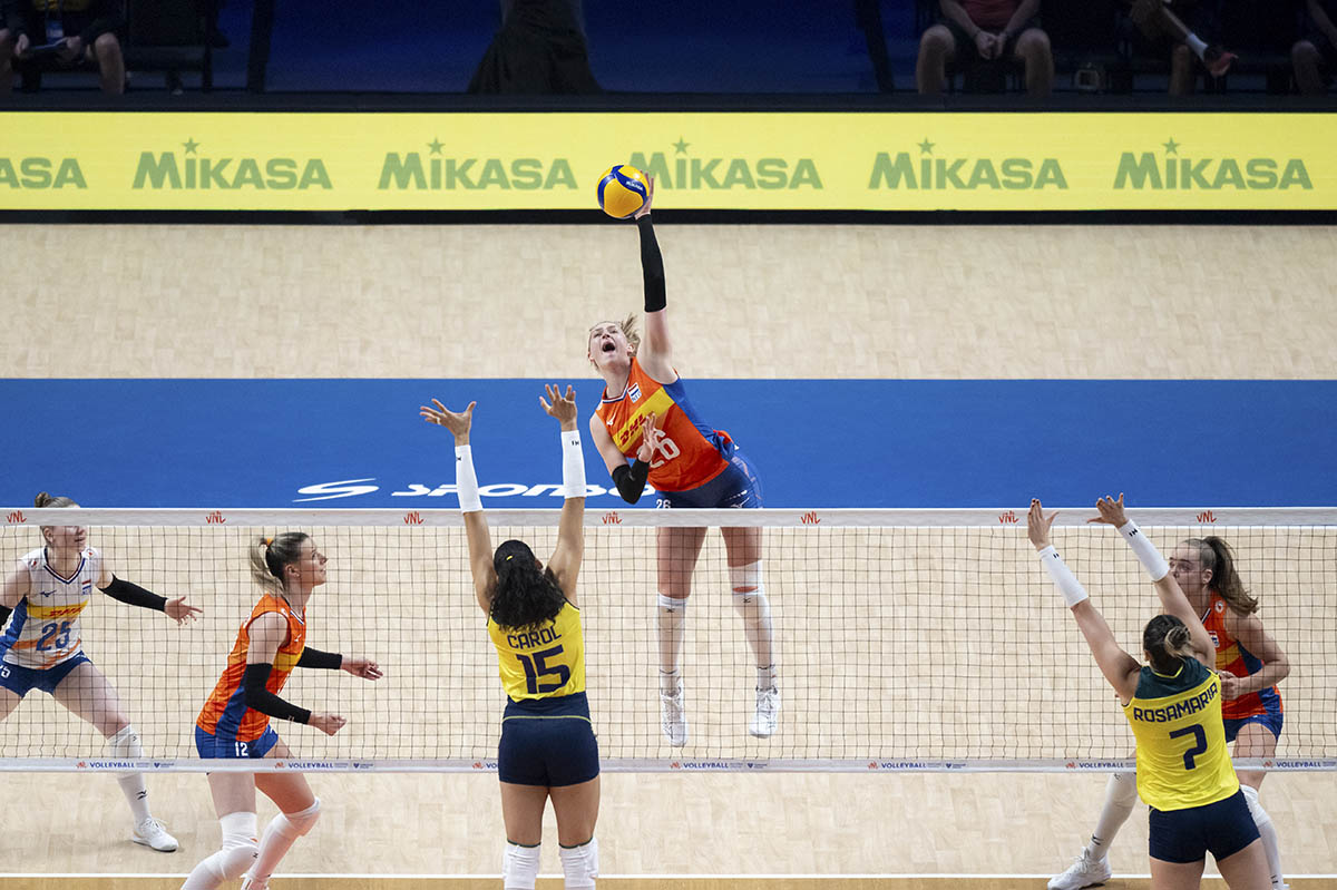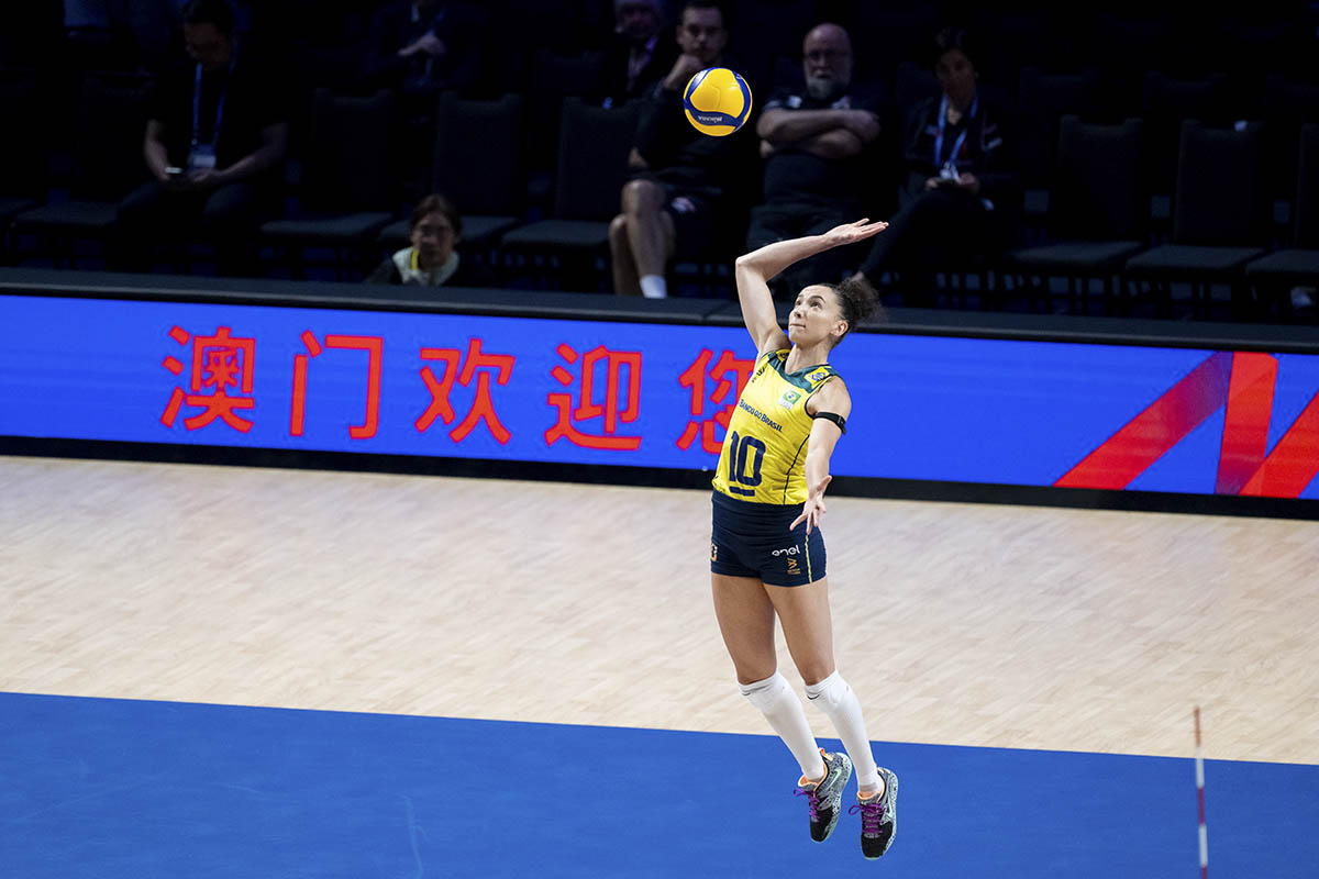「銀河娛樂集團世界女排聯賽澳門2024」今日續進行精彩賽事,其中暫居世界排名第二的巴西對荷蘭,賽前被看好的巴西首局發揮較佳先勝25比17;第二局,荷蘭加強攻防戰術,一度拉開10比2,隨後巴西的姬斯汀娜及加比接連搶分追至18比21,受壓的荷蘭在丹碧琪及歌莉瑪及時回勇下為球隊穩住優勢,以25比20追平局數;第三局,巴西在戰術組織佔據上風,多位球員發揮穩定,摘下25比20領先2比1;第四局初段,兩隊比分接近,巴西在7比5領先後漸漸拋離荷蘭,當中泰爾莎更多次前排攻擊湊效,最終巴西以25比18局數3比1擊敗荷蘭,目前聯賽戰績錄得六戰全勝,下一場將於6月1日對戰意大利。