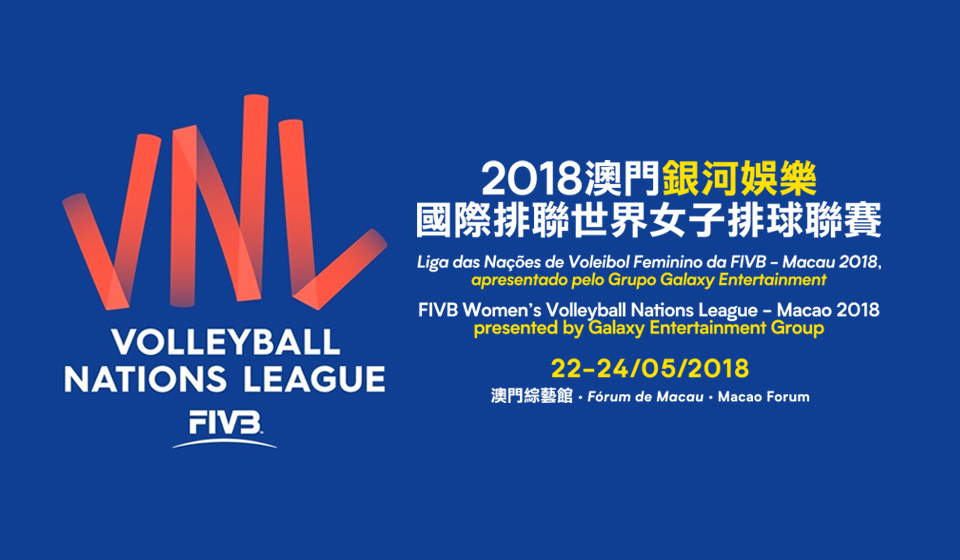 由國際排球聯會授權,澳門特別行政區政府體育局及中國澳門排球總會主辦的「2018澳門銀河娛樂國際排聯世界女子排球聯賽」將於本年5月22日至24日一連三天(周二至周四)在澳門綜藝館舉行。四支女排勁旅包括中國、波蘭、塞爾維亞及泰國,將聚首澳門站力爭聯賽最佳排名,觀眾萬勿錯過。