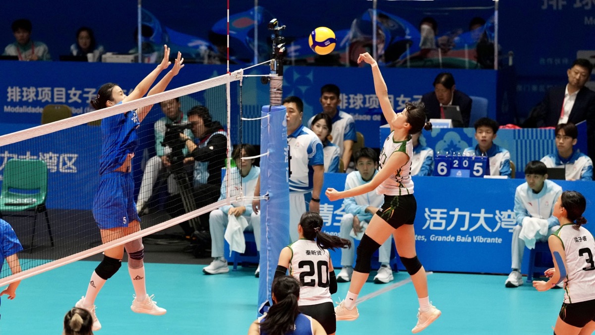 澳門女排第五戰對雲南,首局初在林樂思、李綺琪聯手網前搶攻下,與對手戰成7:10;但隨後女排網上攻勢未能有效破壞對方防守,多番變陣下亦未能改善,反觀雲南火力全開搶分,女排10:25失首局。第二局女排入局稍慢,被雲南搶佔先機領先6:14,但在林樂思、梁子睿接力砲轟加上甄語嫣連續“A士”,追至12:15落後3分;雲南在暫停後亦穩住陣腳再拉開,女排18:25再失一局。第三局初段林樂思、梁子睿火力持續輸出下戰成8:9,但隨後被雲南逐步拉開比分,最終15:25再失一局被雲南零封。