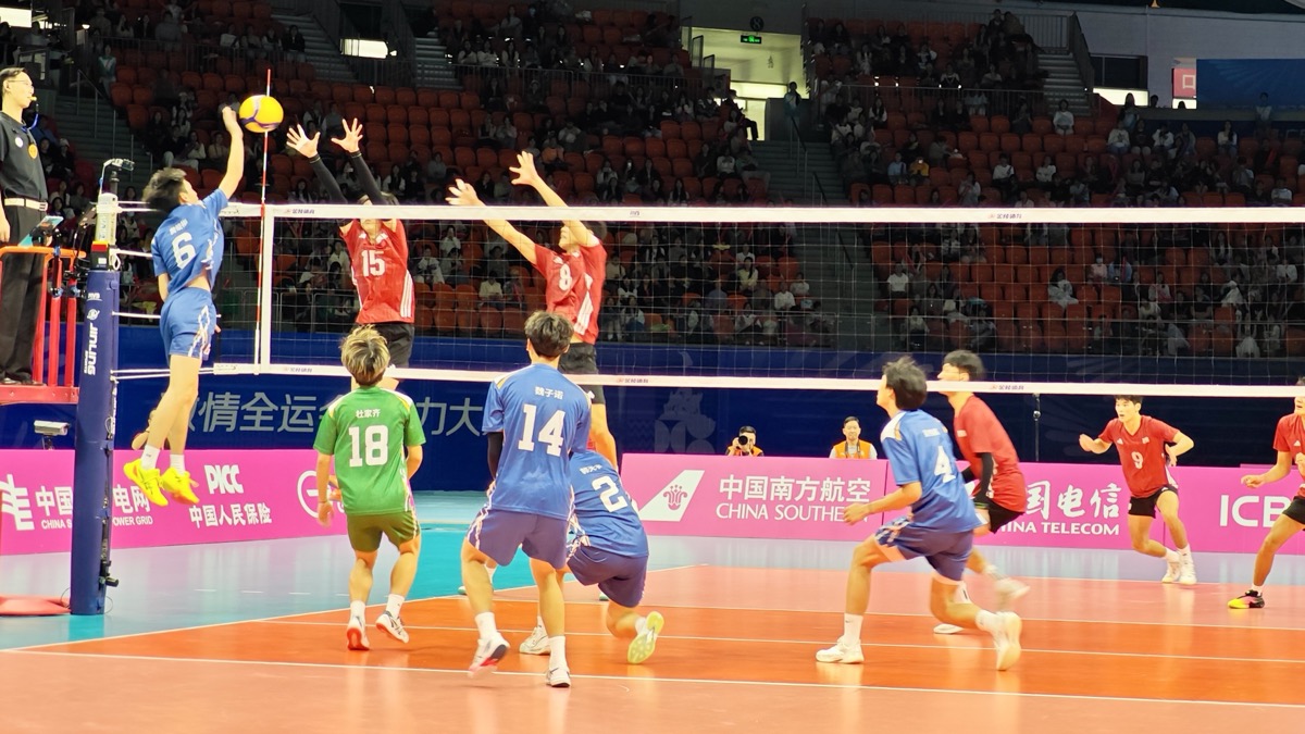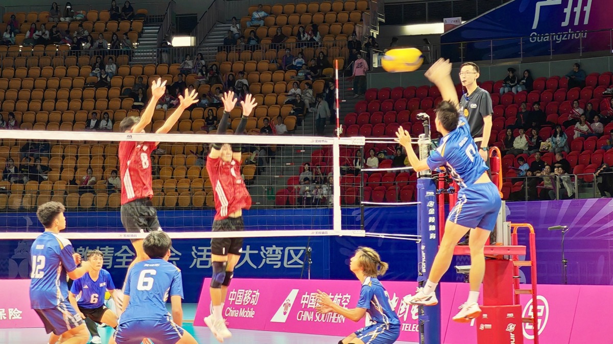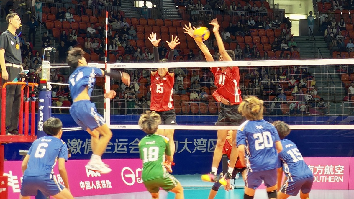 U18男排第9-13名排名賽首戰對廣東,首局在黃曉彬、魏子諾等接力網前開火下取得9:5領先,此後U18男排一路維持優勢,局尾魏子諾一攻一攔取下關键2分,25:22打下首局。第二局廣東反撲,U18男排一路力追,但未能收復失地,21:25被扳平局。第三局U18男排開局仍處於落後,廣東則越打越順,男排雖有隊長林俊翹、周柏俊等連番開火抗衡,但仍以16:25局數落後1:2。第四局U18男排重整旗鼓,初段戢成9:9;惟隨後多番攻勢被攔阻,廣東亦加強火力搶分,男排17:25再失一局,局數1:3見負。