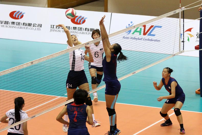 面對實力在亞洲前列的中華台北,女排首局一攻未能有效壓逼對手,加上對手網前攻擊火力強大,比分早早被拉開,女排僅憑梁安盈、羅詠心零星攻勢取分,以6:25先失一局。第二局經教練團調整後,女排在攔網防守方面更為積極,守起對方不少攻勢,加上副攻李京勵網前適時取分,開局與對手戰成5:5平手;中華台北隨後加強火力取得領先優勢;女排並未氣餒,梁安盈、副攻李綺琪等奮力在網前抗衡;惟至局中對手加強發球,成功破壞女排一傳並連番反擊拉開差距,女排以9:25再失一局。