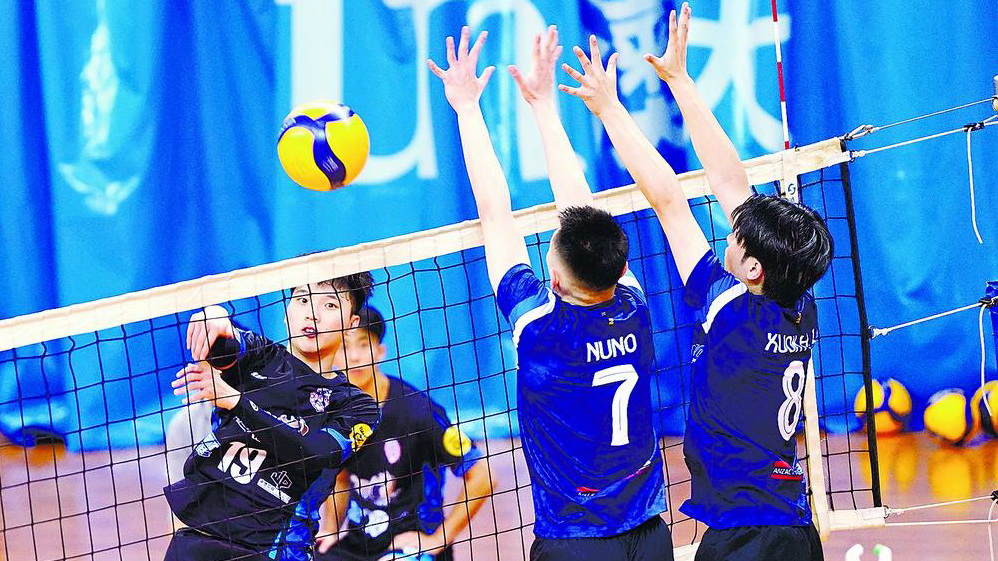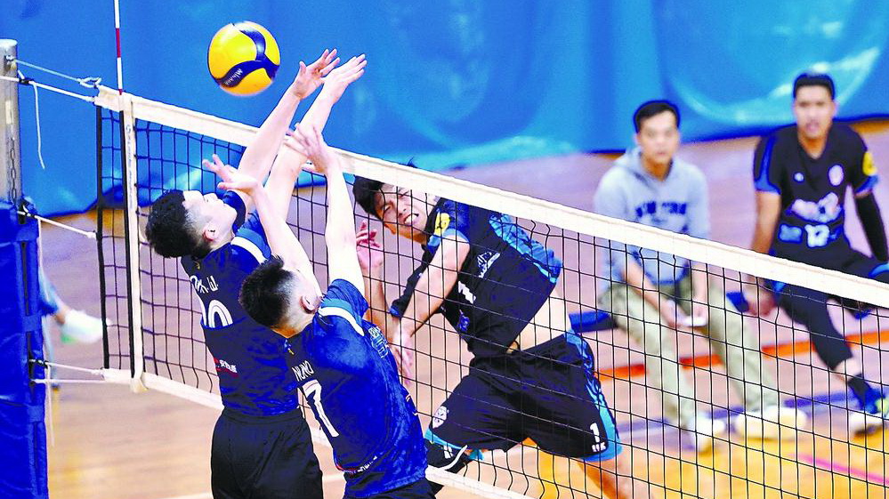 排球聯賽二○二三周六(15日)下午二時半起上演兩場冠軍戰,尾場男子由紅藍2鬥慈青爭奪王座。慈青有吳文軒、鄧梓浩及關嘉杰扣球得手領先,慢熱的紅藍2有戴坤鋮及羅錦源網前力追,至十二比十二後,慈青莫嘉偉、郭昊林等打穿防線再領先。紅藍2加強專注鬥到廿一比廿一平後,保持把握力以廿五比廿二先贏一局。第二局初段雙方咬緊比分,慈青以刁鑽的扣球打穿紅藍2防守或造就防守失誤,廿五比廿二扳平局數。第三局慈青攻勢較強,王知章等多次快攻得手,以廿五比十八,反超局數二比一。第四局同樣鬥得緊湊,紅藍較佳表現以廿五比廿二扳平局數。決勝局紅藍2領先後保持優勢以十五比十二,局數三比二衛冕冠軍。