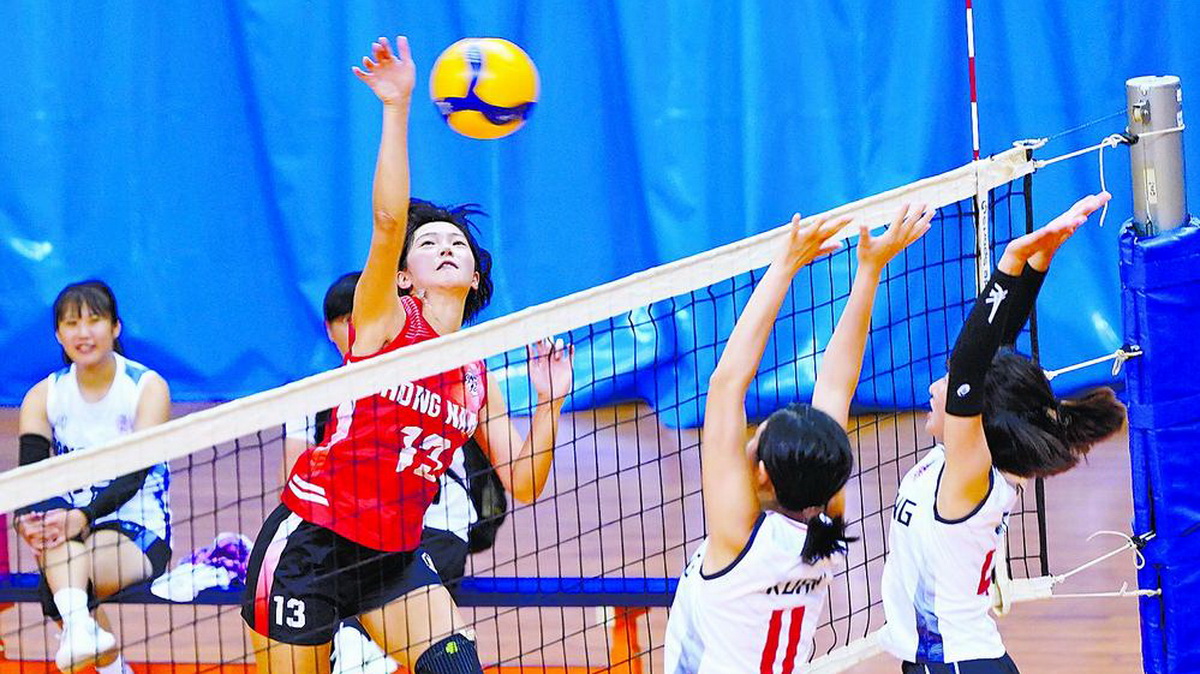 女子桂冠由紅藍及培正A“兩姊妹”爭奪。雙方都熟悉對手球路,紅藍由梁安盈、羅詠心領軍全力出擊,配上梁子睿等,在火力佔優下以廿五比十二先拔頭籌。第二局培正A有林樂思等殺球力追,但紅藍仍保持發揮,在羅詠心等多次扣球得手,以廿五比十八再下一城。第三局紅藍攻勢放緩,一度被培正A領先,但紅藍即加強二傳及防守,且培正A在進攻上較多失誤。紅藍終以廿五比十九,直落三局擊敗培正A衛冕,實現十一連霸。