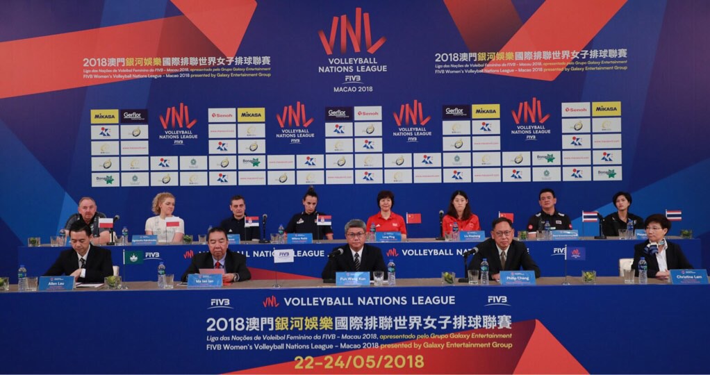由國際排球聯會授權,澳門特別行政區政府體育局及中國澳門排球總會主辦的「2018澳門銀河娛樂國際排聯世界女子排球聯賽」,明日(22日)於澳門綜藝館揭幕,賽事組委會今日(21日)舉行賽前記者會,四支球隊包括國家隊、塞爾維亞隊、泰國隊及波蘭隊的教練及隊長會見傳媒,各隊均希望在澳門站發揮最佳表現。明日首場賽事將於下午四時半展開,先由泰國對塞爾維亞,八時將由中國隊迎戰波蘭隊。