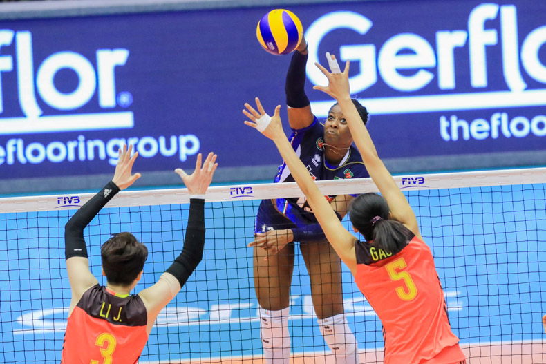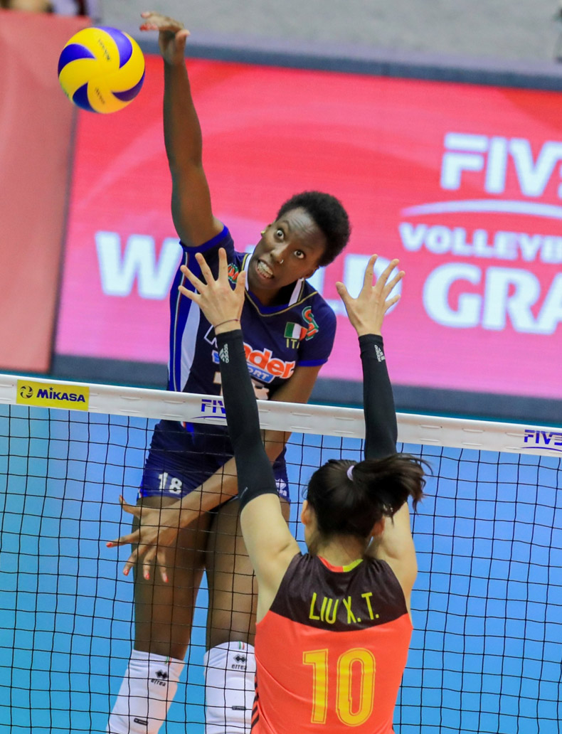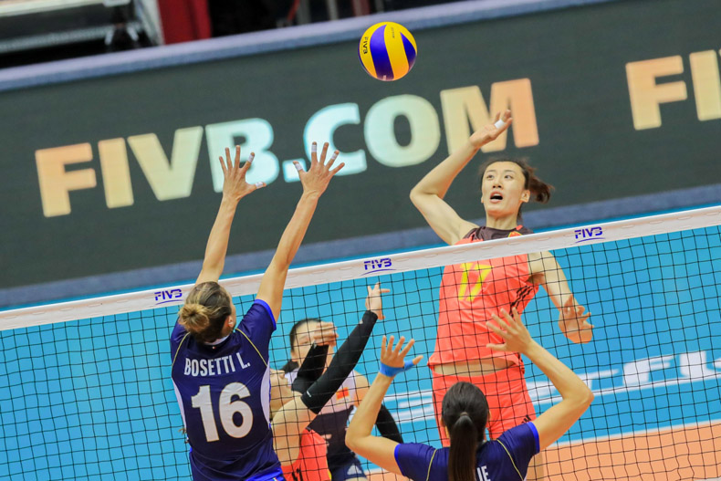 以新人為主的國家隊今場派出李靜、高意、龔翔宇、劉曉彤及王媛媛正選披甲,袁心玥及朱婷先任後備,首局初段表現尚可,惜優勢不多,站穩陣腳的意大利其後加強攻防戰術,在西拉及伊高奴漸漸入局後,愈打愈順,結果以25比19反勝局數1-0;第二局,國家隊試圖收復失地,但進攻及防守未能湊巧,比分一直落後意大利2-3分,戰至18比17超前時於關鍵球處理不當,雖然朱婷連番扣球緊追,但最終仍以22比25失掉第二局;領先兩局的意大利在第三局未有放軟,在得分點較多下,加上強勁扣球及出色防守令球隊一直保持領先,結果伊高奴奪得21分,當中19分來自扣球得分,帶領球隊直落三局輕取國家隊,首仗旗開得勝。贏波的意大利明午二時半將迎來硬仗對美國,近四次對賽中,美國皆全部勝出,今場會是兩隊第八次交鋒。