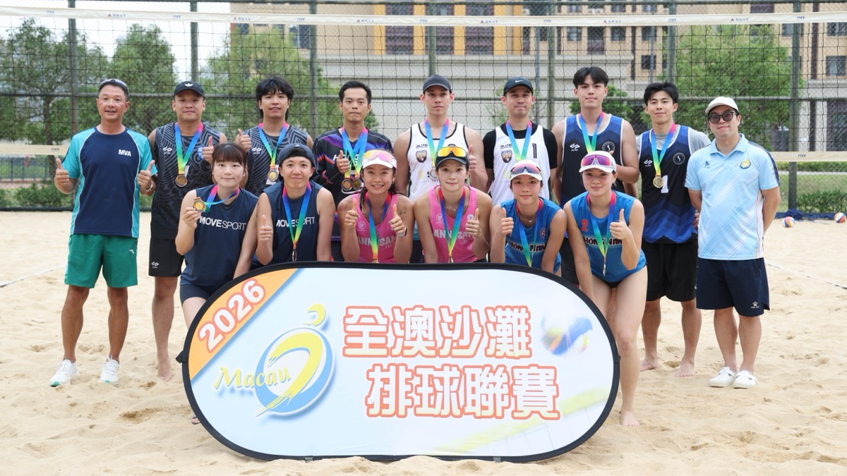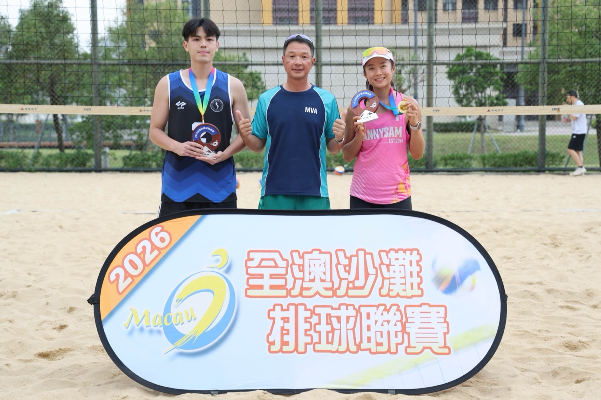 2026全澳沙灘排球聯賽周日(12日)上演甲組最終決戰,男子甲組梓楓A戴坤鋮/譚哲明和女子甲組紅藍A梁安盈/羅詠心雙雙以直落兩局成功衛冕,紅藍A“安心”組合更達成最長九連霸的賽事紀錄。