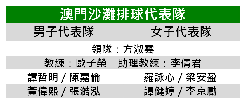 “第十九屆亞洲運動會”即將登場,澳門沙灘排球男子代表隊隊譚哲明/陳嘉倫、黃偉熙/張澔泓和女子代表隊羅詠心/梁安盈、譚健婷/李京勵周六(16日)出發前往浙江杭州,將與各國好手同場競技。
