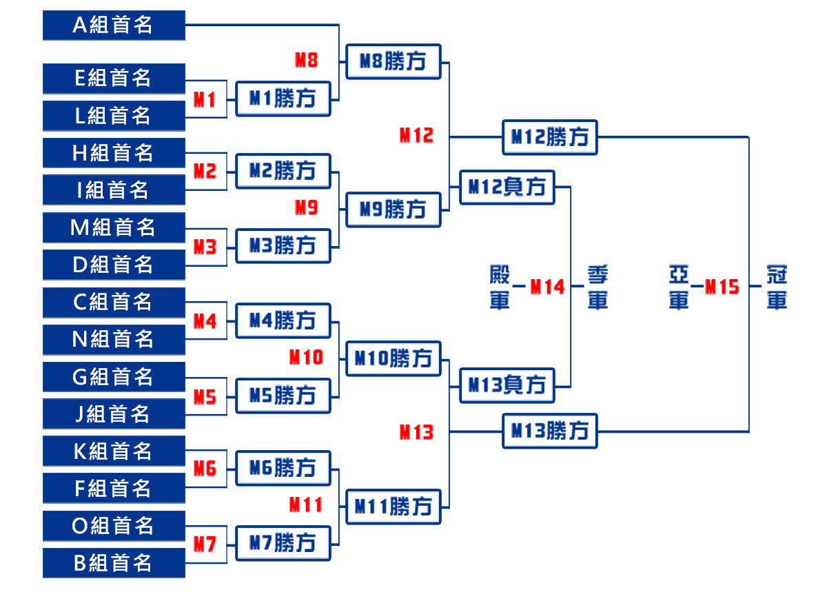 次階段十五強賽事至冠軍戰採用單淘汰賽制,各場賽事1局15分定勝負(受2023.06.17暴雨影響,十五強賽每局分數調整為11分-2023.06.19更新)。
